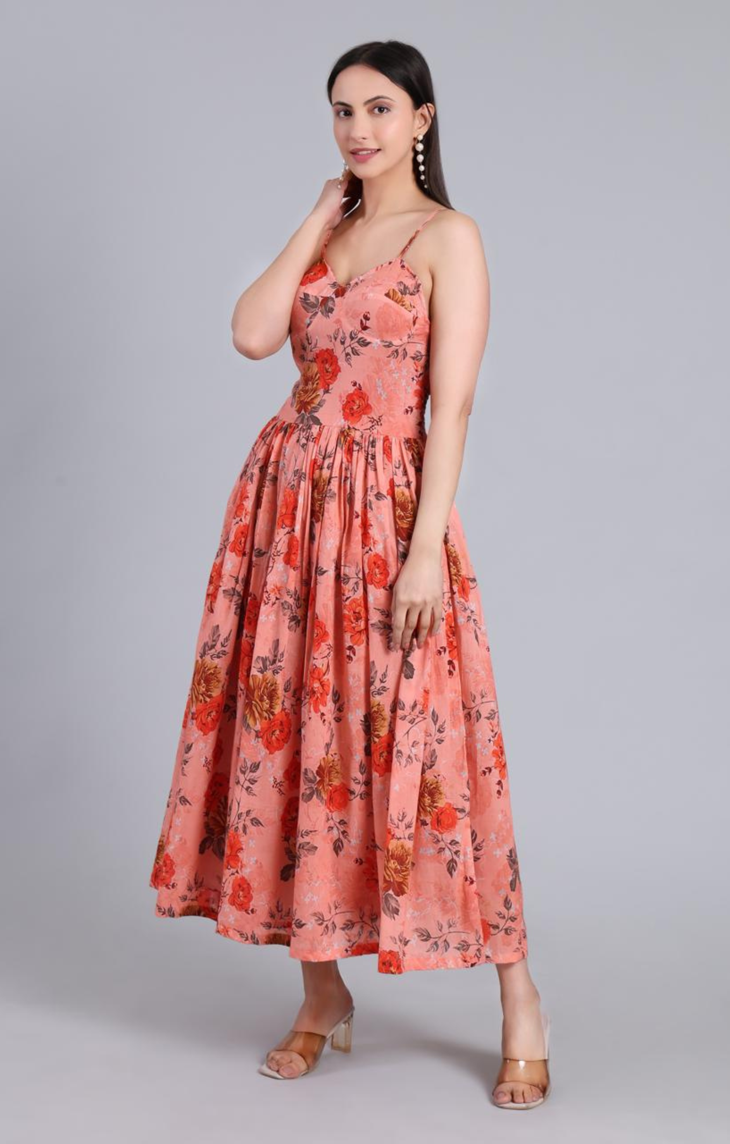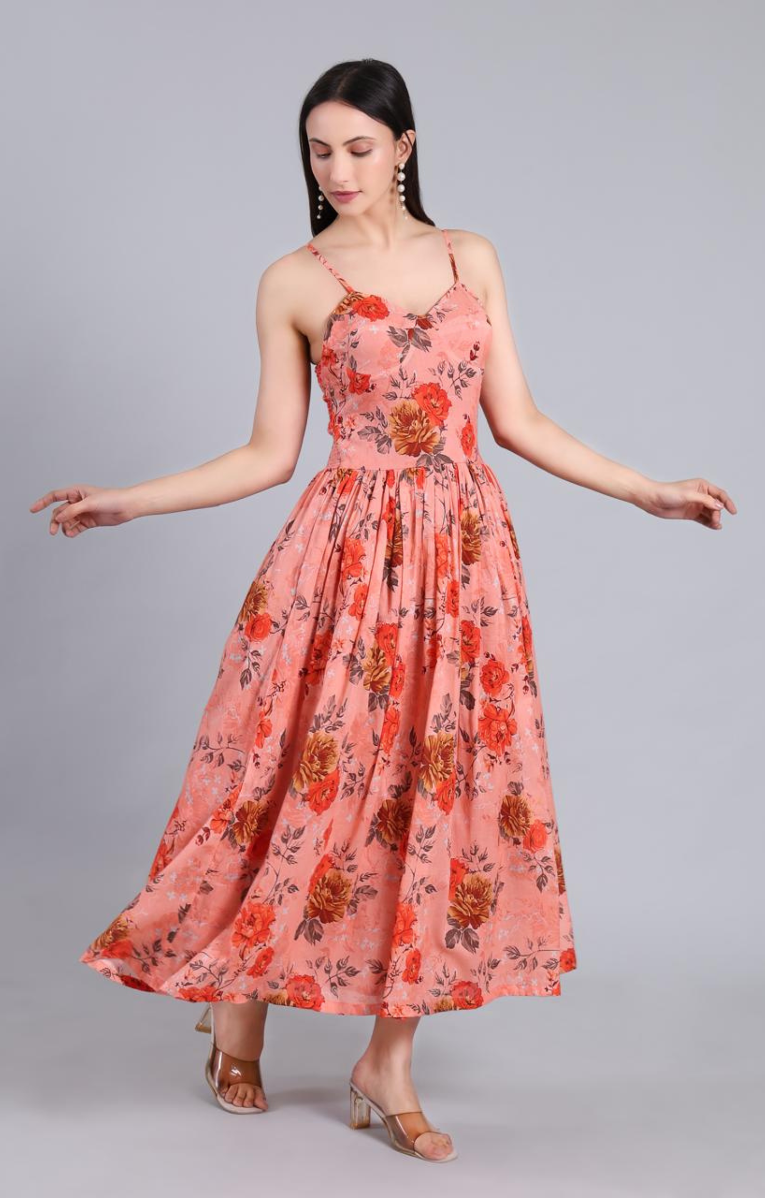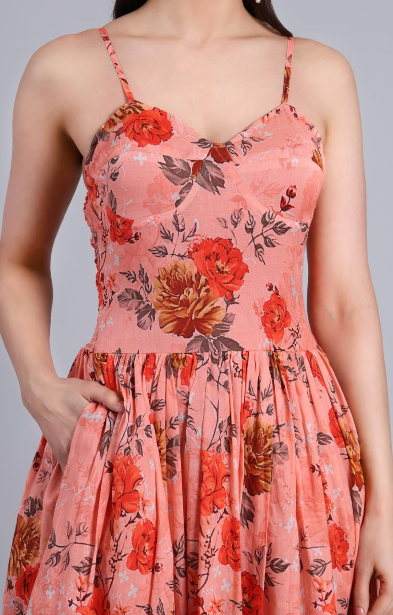 A soft and feminine floral dress designed for effortless summer days. The Elara dress features delicate straps and a beautifully gathered silhouette, perfect for brunches, vacations, and garden gatherings.