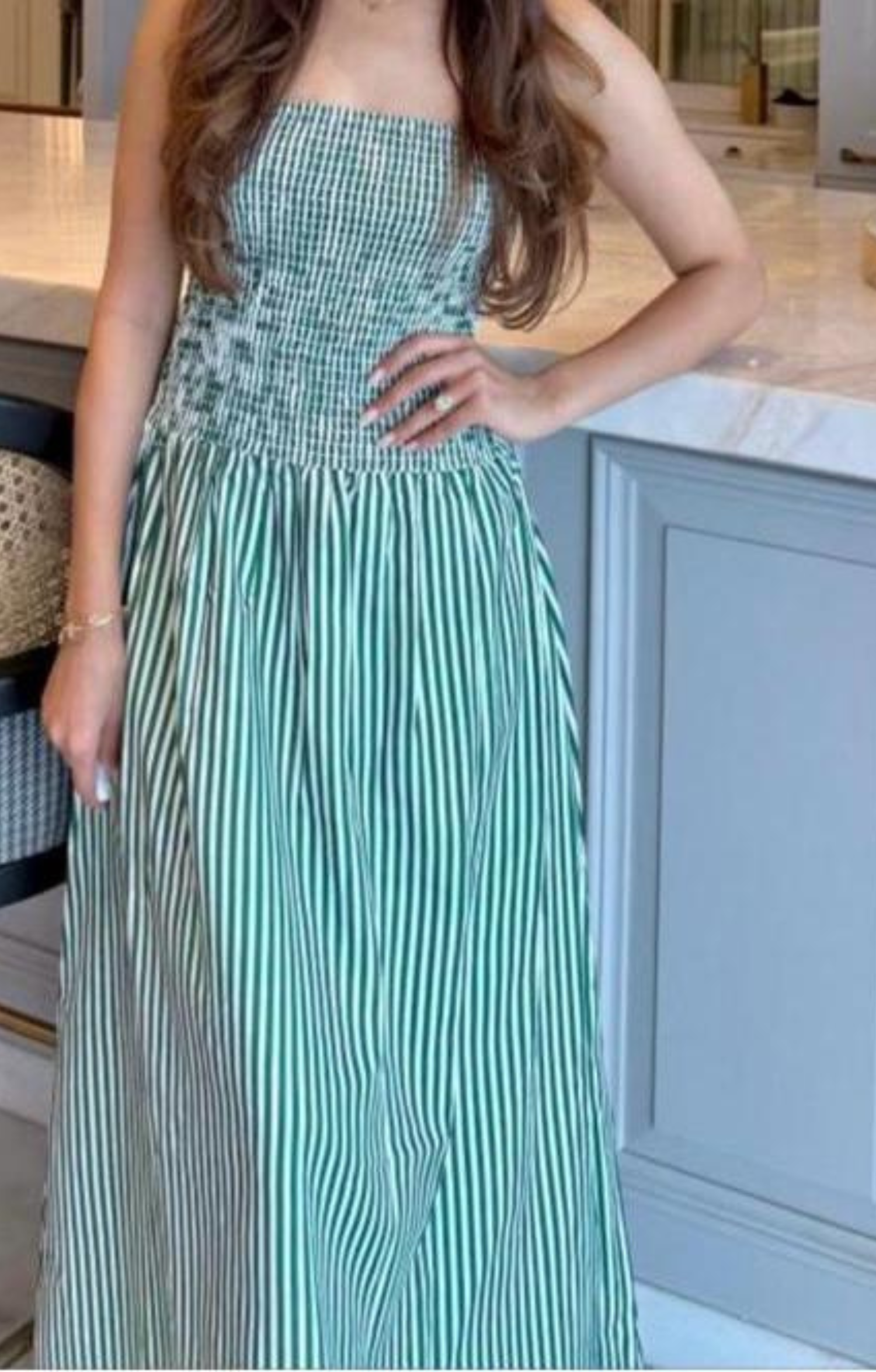 “A breezy Cotton blend dress ‘ade with smocking details .Perfect for – Brunches , vacations and leisure